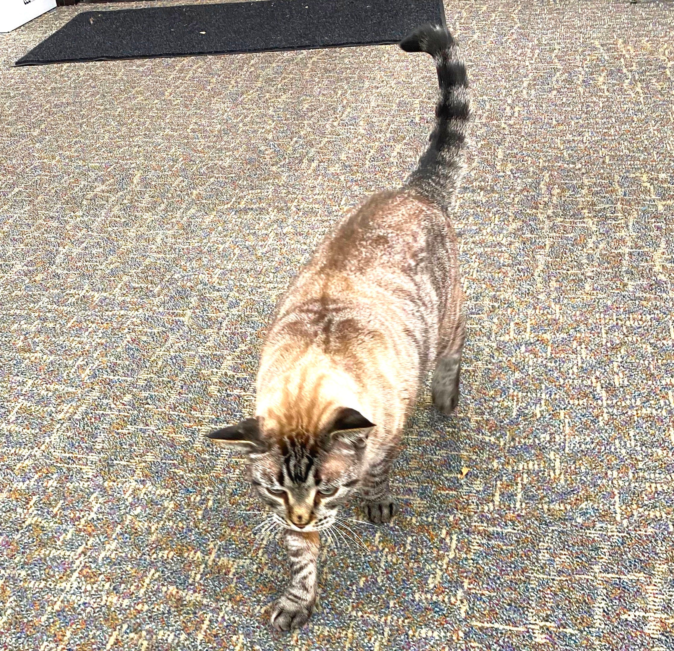 Browser’s talents became apparent to his coworkers immediately, and he was quickly promoted through the ranks of the library staff. Looking for a certain book? Browser will help you find it! Can’t find the periodicals? Browser will lead the way! Browser babysits kids, patrols the perimeter, and helps keep the card catalog warm. Browser is a Texan cat through and through. Yes, he realizes he’s a celebrity. Who cares? There’s work that needs doing. This is a cat with all his paws on the ground. Or the library floor.